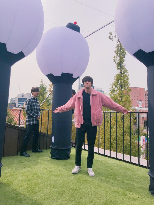 ストア内にある自分のフィギュアや、巨大ARMY BOMBの前でポーズをとるメンバーたちの姿がファンを喜ばせた。