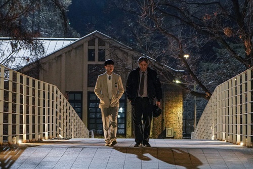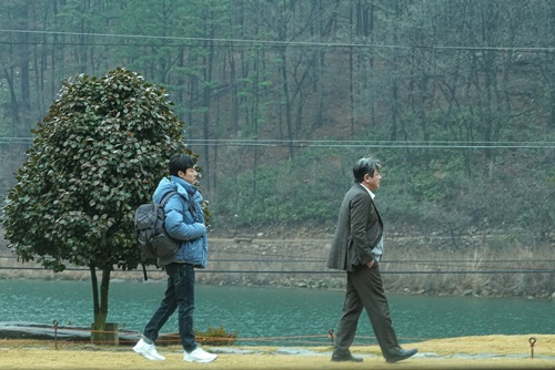 今回解禁される新場面カットは、北朝鮮から脱北してきた天才数学者という身分を隠しながら働くチェ・ミンシク演じるハクソンが、警備員の制服のままエリート学校で挫折寸前のジウに数学を教える姿や、真剣な眼差しでピアノを弾くカット、人を寄せ付けないように生きてきたハクソンがジウと二人一緒に歩く場面など12枚だ。