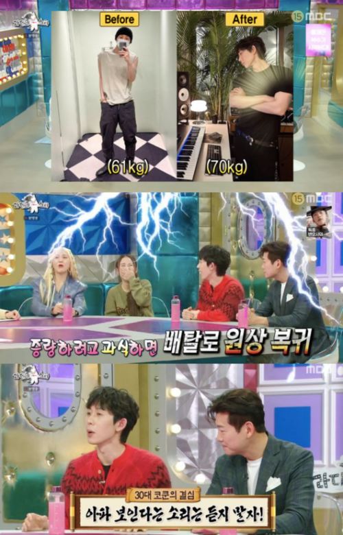 4月5日に放送されたバラエティ番組『ラジオスター』で9kgの増量を告白し「昨年一年、『私は1人で暮らす』を撮りながら増量して運動をしなければならないという気がした。序盤は61~2kgだったが、今は69~70kgを行ったり来たりしている」として9kg前後の写真を公開し「腕と肩の運動をたくさんした」と自信を示した。