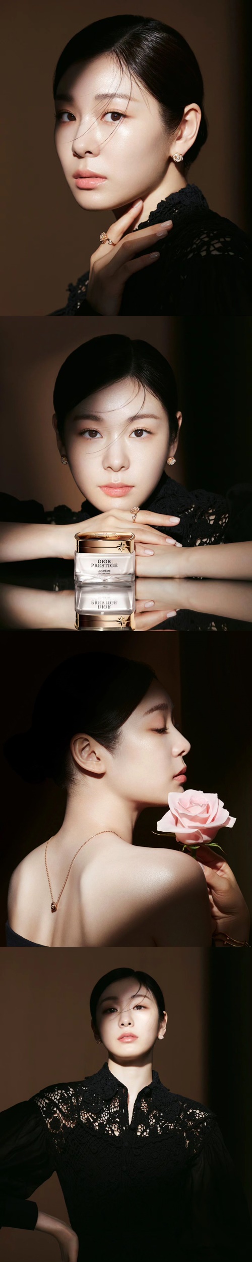 自身がアンバサダーを務める高級ブランド『DIOR』の化粧品とともにカメラを見つめるキム・ヨナが写っている。光に照らされた顔からは肌の透明感が伝わるだけでなく、整った目鼻立ちが見る者を魅了した。