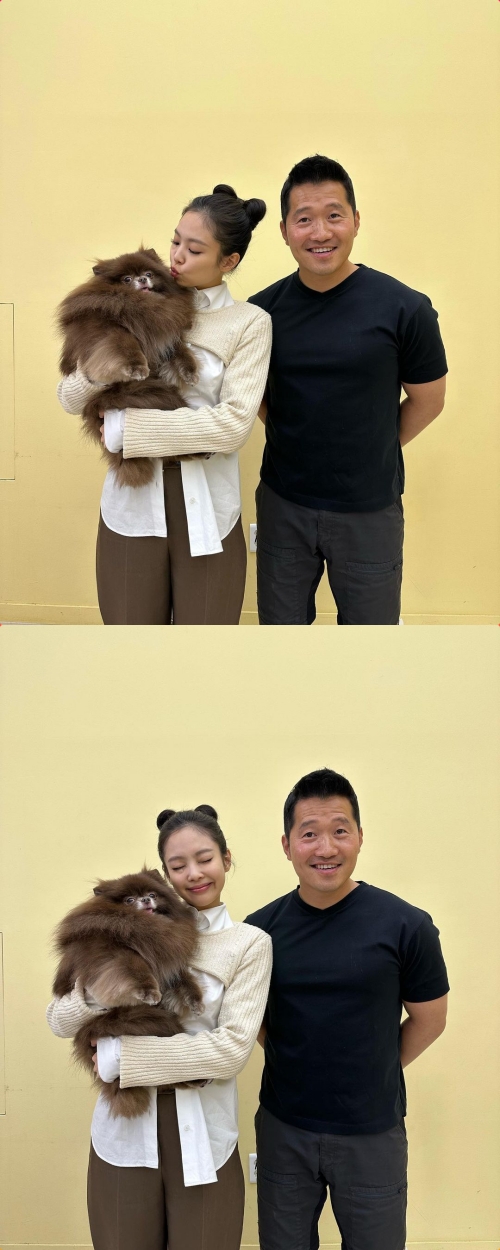 “犬統領”と呼ばれる韓国のベテランドッグトレーナーのカン・ヒョンウクは最近、自身のインスタグラムにジェニーとその愛犬・クマとの集合ショットを公開した。