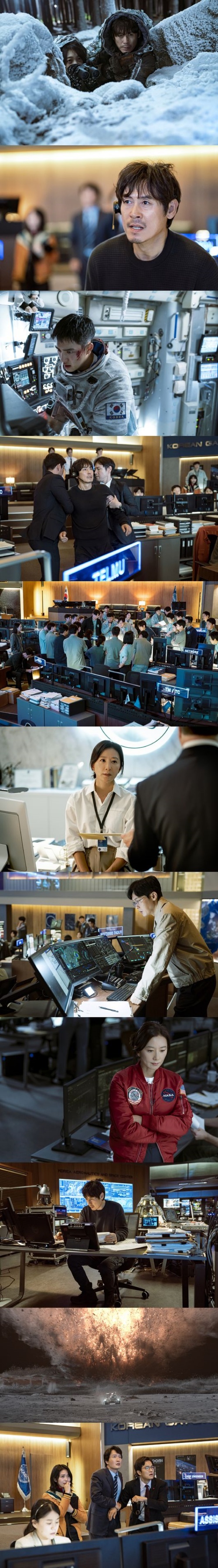 今回公開されたスチールは、ソンウとジェグクだけでなく、現宇宙センター長や政府官僚、ジェグクとともに働く天文台インターンなど、韓国の宇宙隊員の無事帰還という一つの目標の前に立った多様な人々が登場し、好奇心を刺激する。
