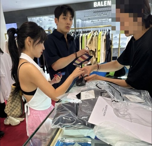 「6月27日」という説明と共に公開された写真には、(G)I-DLE・ソヨンとムン・セフンがソウル江南(カンナム)区のデパートで衣類を購入する姿が写っている。