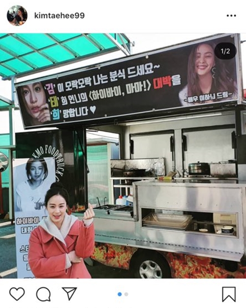 公開された写真の中のキム・テヒは、イ・ハニから贈られた軽食のキッチンカーの前でハートポーズをとっている。キッチンカーには“キム・テヒ”の名前で作られたあいうえお作文のメッセージも綴られ、2人の女優の仲睦まじさが伺えた。