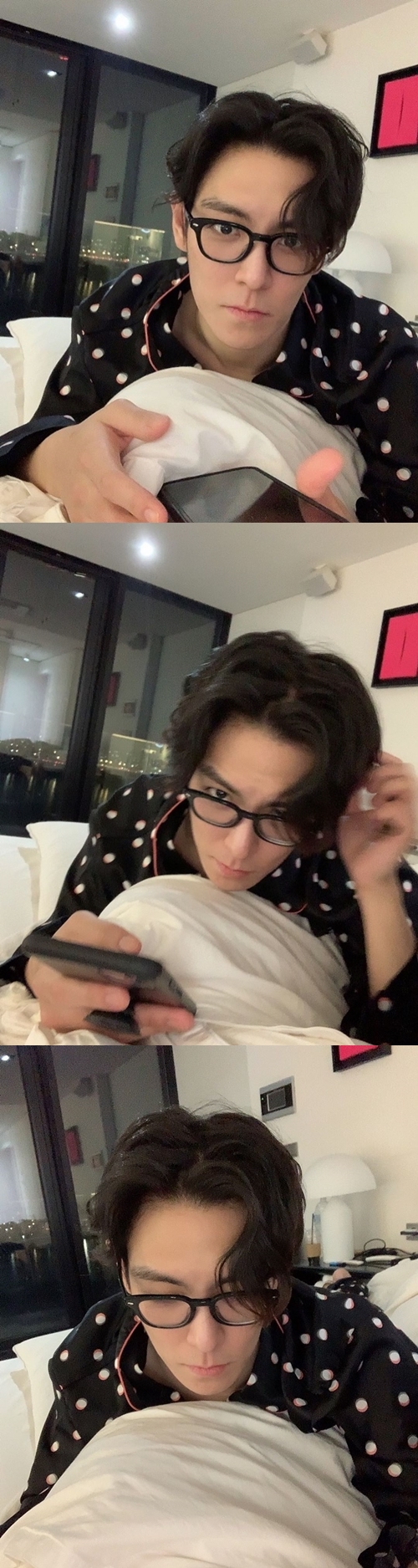 T.O.Pは1月22日、自身のインスタグラムに「HUHUHU HELLO!!!!」と投稿し、数枚の写真を掲載。黒地にドット柄のパジャマに身を包んだT.O.Pの姿が目を引いた。写真の中のT.O.Pは、ベッド根に寝そべりスマートフォンを操作している。公の場では見ることのできないリラックスした様子だ。