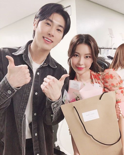 先に公開された写真には、香港映画『男たちの挽歌』をミュージカル化した『英雄本色』に出演したJ-Minの隣でにこやかに親指を立てるユンホの姿が写っている。