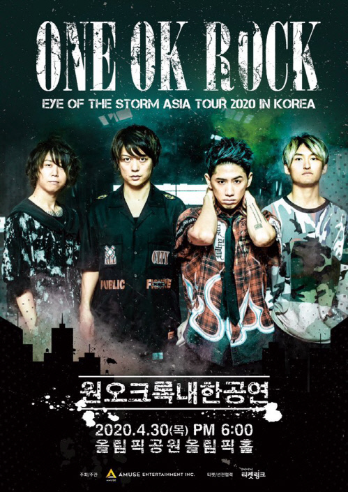 ONE OK ROCKの5度目の韓国公演「EYE OF THE STORM ASIA TO UR 2020 IN KOREA」は、来る4月30日午後6時、ソウル・オリンピック公園のオリンピックホールで開催される。